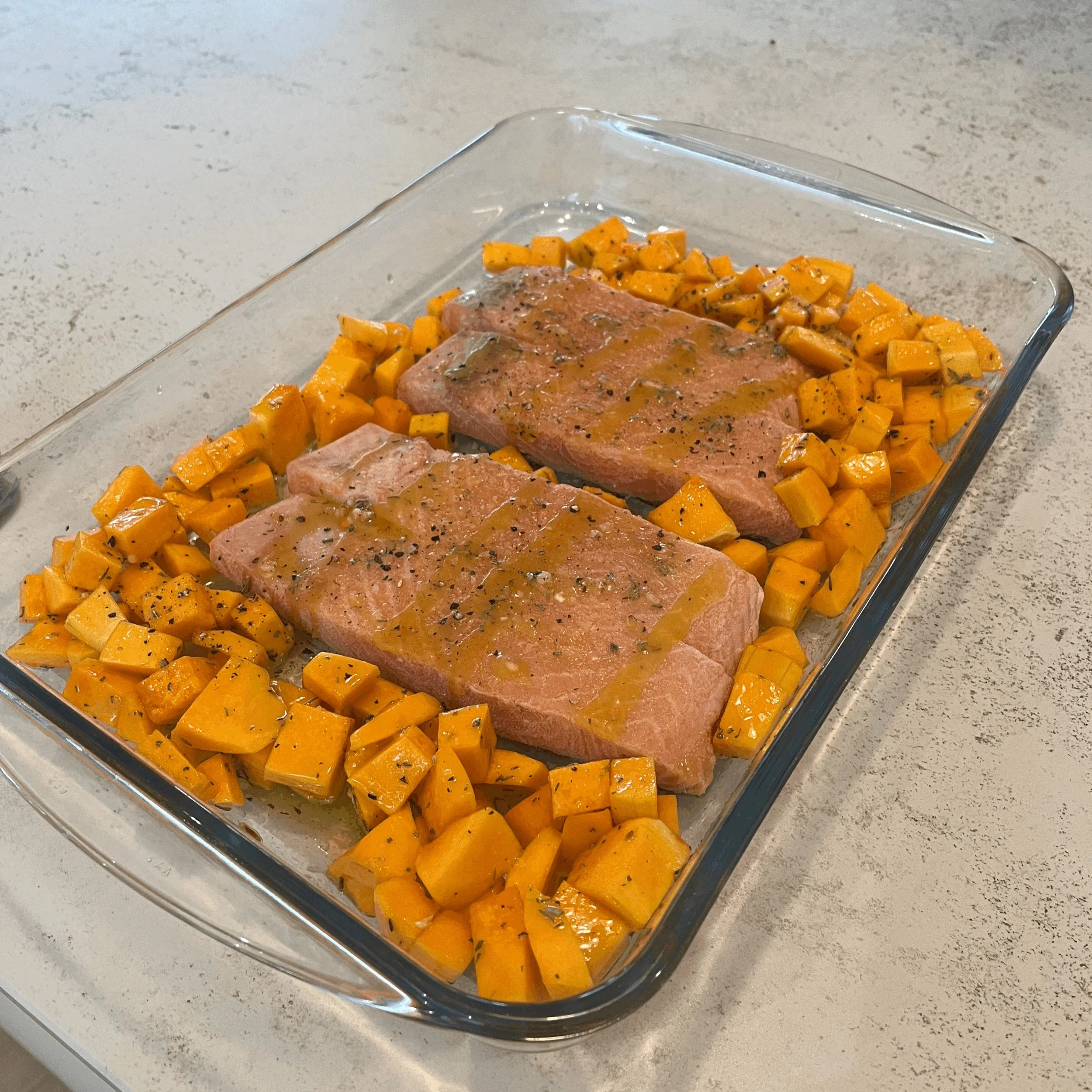2 Pavés de truites (ici congelés, si tu les mets frais; il faudra ajuster le temps de cuisson à 25 minutes plutôt que 35 minutes)